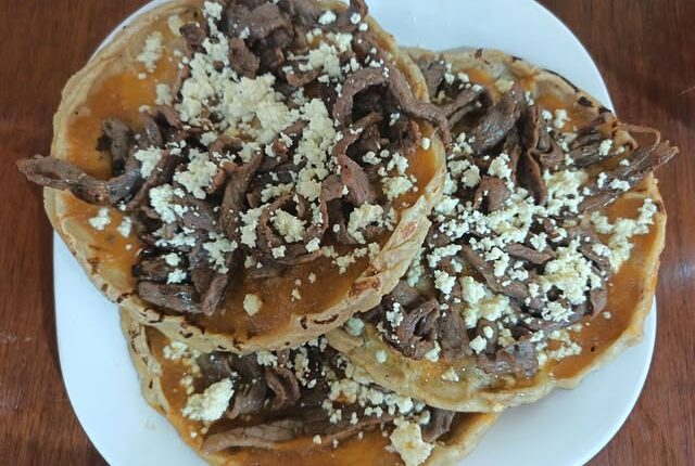 La Gorda Misanteca: A menudo se sirven como picadas gigantes o gorditas rellenas de cecina, frijoles y queso.