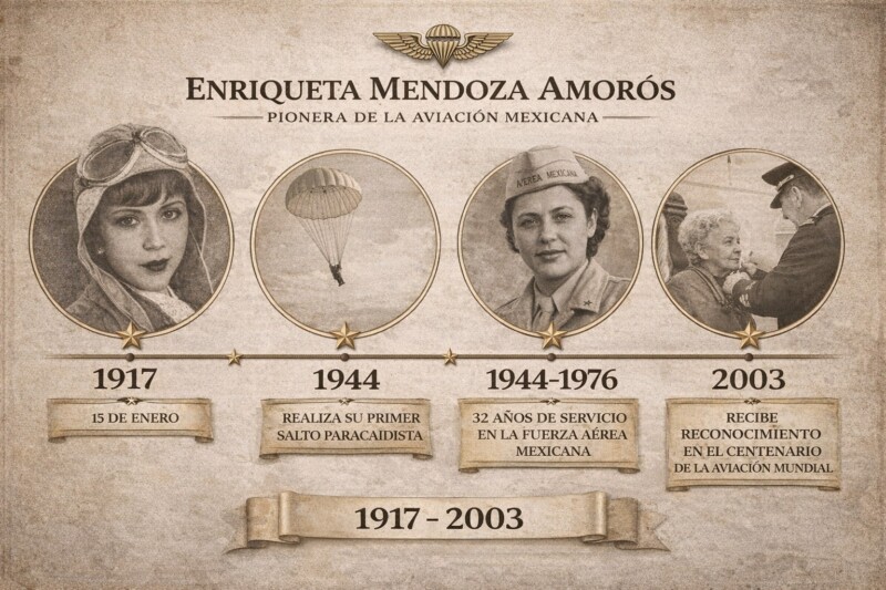 Se convirtió en la primera mujer mexicana en realizar un salto en paracaídas en el Aeropuerto de Balbuena.